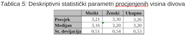 Tablica 5: Deskriptivni statistički parametri procjenjenih visina divova