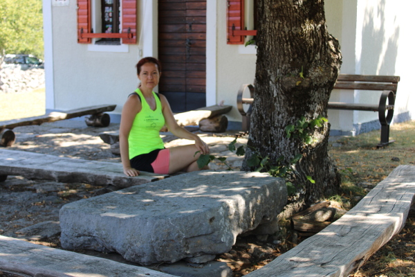 Uz današnju crkvu Velike Gospe od Rujna vezana je još jedna zanimljivost. Riječ je velikoj kamenoj ploči koja se nalazi ispred crkve podno stabla lipe, a služi kao ”kameni stol”. Zanimljivo je već i to da nitko od dosadašnjih istraživača i putopisaca nije obratio pozornost na tu ploču kao na spomeničku baštinu. Većina je nije niti spomenula. No, ”stol” uz kojeg su drvene klupe i za kojim u hladovini odmaraju i krijepe se hodačsnici i planinari nije tek obična ploča od vapnenca. Nije niti isklesana sa svrhom da bude dijelom ”namještaja” pod vedrim nebom.