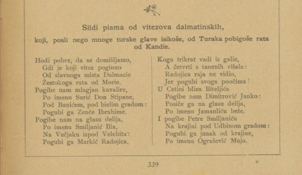 Narodna predaja, u vidu pjesme, o pogibiji Ilije Smiljanića prvi puta tiskana je u knjizi svećenika i književnika Andrije Kačića Miošića “Razgovor ugodni naroda slovinskoga“ 1756. godine (Izvor: Andrija Kačić Miošić “Razgovor ugodni naroda slovinskoga“, 4. izdanje, 1892.)
