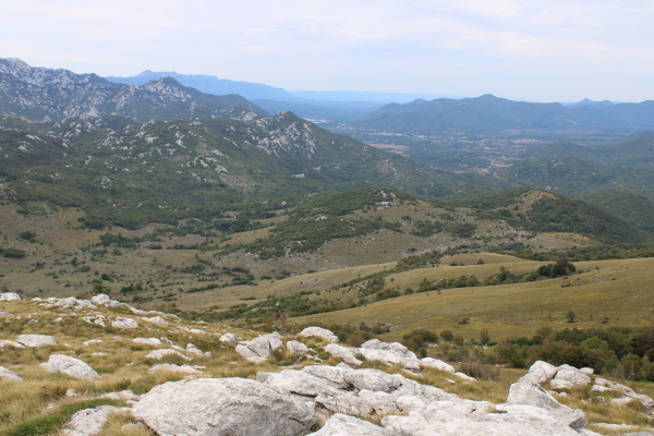 Pogled s uzdužne makadamske ceste koja se pruža udolinom Vučjak u smjeru sjever-jug na grobište protuturskog ratnika i drevnoga velebitskog diva (Foto: Goran Majetić)