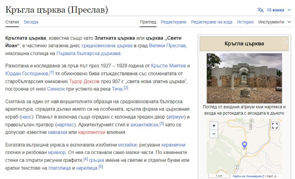 Članak o Okrugloj crkvi na bugarskoj Wikipediji. U drugom ulomku jasno se vidi godina 907. kada se spominje "nova zlatna crkva" za koju se smatra da bi mogla biti Okrugala crkva.